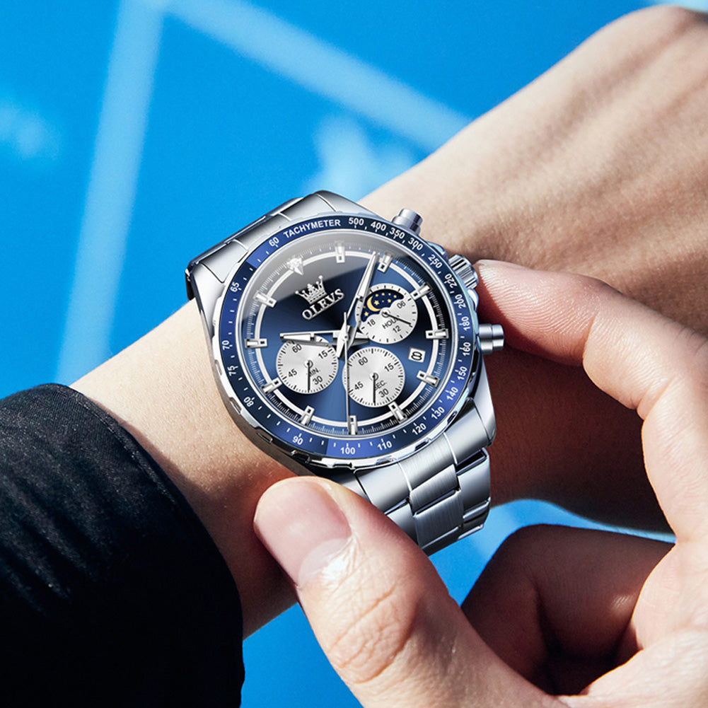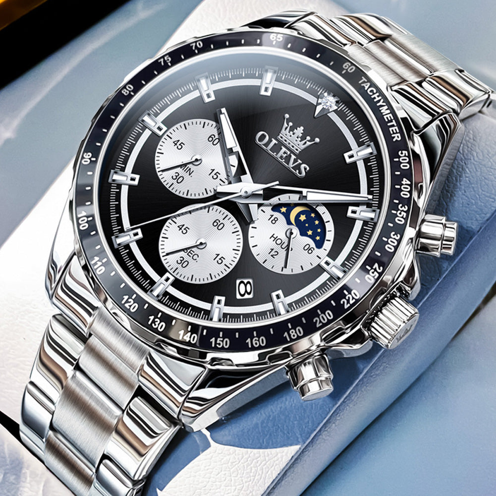 OLEVS 2945 Watches For Men Business Dress Luxury Casual Analog Quartz Stainless Steel Waterproof Luminous Date Men Wrist Watches Reloj Para Hombre Black Dial