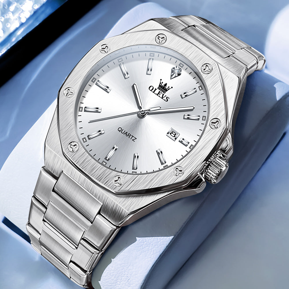 - Fashion OLEVS Watch Men: Gold stainless steel men watch, equipped with high-quality quartz movement, clear and easy-to-read 42mm large dial design, practical date display window and luminous hands. When using the luminous function for the first time, it needs to be exposed to strong light for more than 30 seconds before it can be turned on, so that you can easily read the time at night.