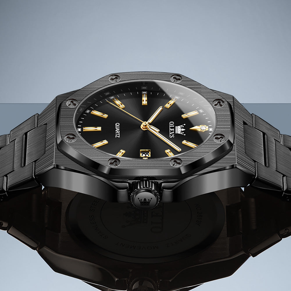 OLEVS 3613 Men's Watch with Gold Bracelet, Business Style, Gift-Ready, 3ATM Waterproof