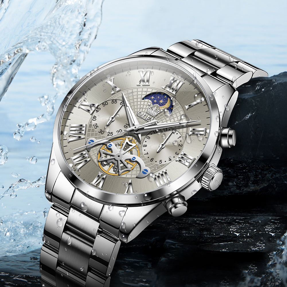 OLEVS 3640 Chronograph Watches for Men Waterproof Business Dress Analog Quartz Luxury Moon Phase Stainless Steel Roman Numeral Luminous Casual Mens Wrist Watches Reloj Para Hombre