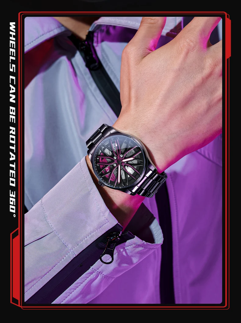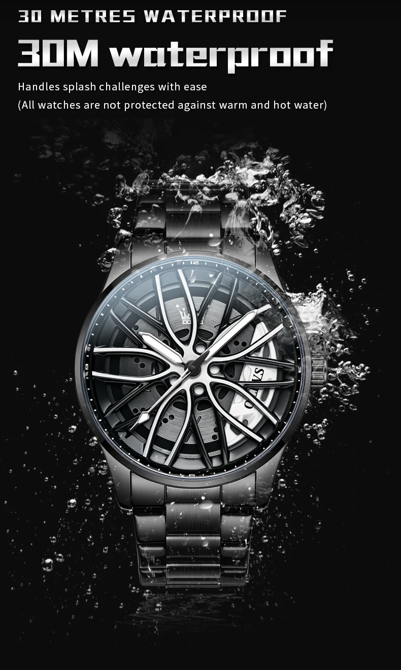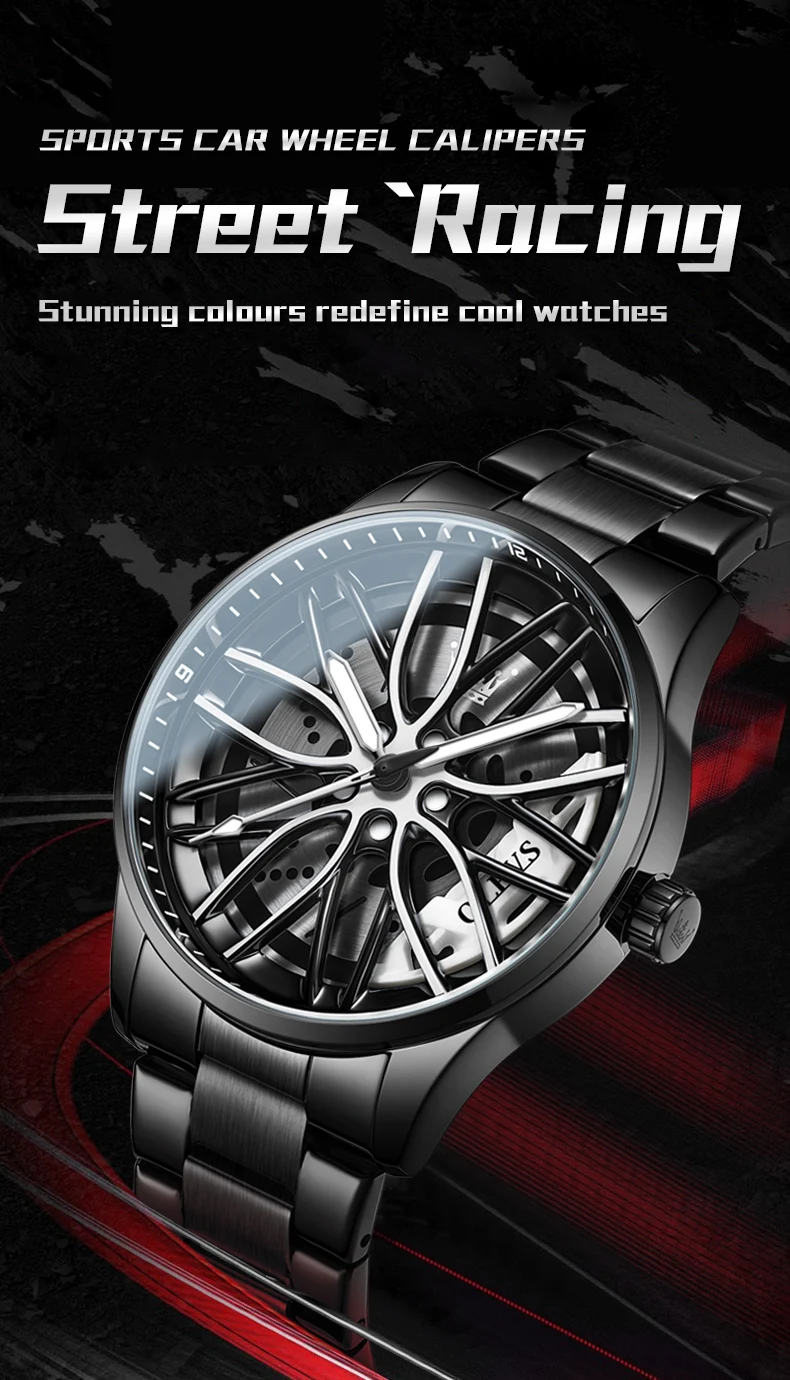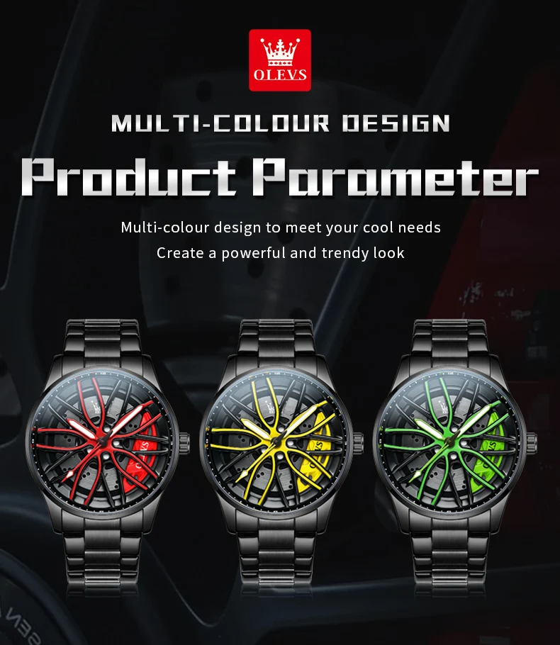 OLEVS 9937 Men's Watch Rotary Dial Skeleton Waterproof Luminous Hollow Wheel Hub Fashion Sports Stainless Steel Quartz Watch