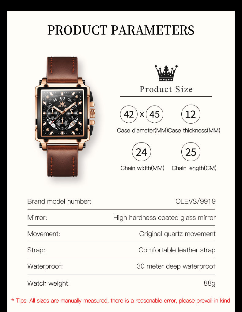 OLEVS 9919 Watches for Men Chronograph Fashion Dress Watch Waterproof Luminous Casual Square Wrist Watches